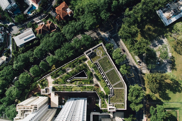 지속 가능한 건축 관행, 예를 들어 반사율이 높은 재료와 쿨 루프의 사용은 도시 건물의 열 흡수를 줄일 수 있습니다. 쿨 루프는 더 많은 태양을 반사하고 적은 열을 흡수하도록 설계되어 지붕 온도를 낮추고 내부 냉방 요구를 줄이는 데 도움을 줍니다. 투과성 포장재는 빗물이 지면에 스며들도록 하여 유출을 줄이고 도시 환경을 냉각시키는 데 도움을 줍니다.