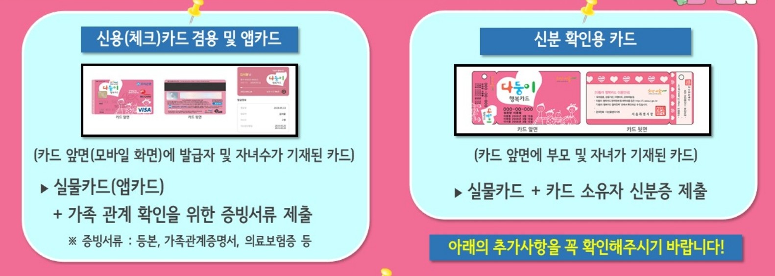 단, 실물카드나 앱카드를 소지하고 증빙서류(가족관계증명서, 주민등록등본, 의료보험증 등)를 지참하여아합니다.